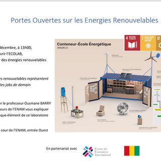 L’International Trade Center (ITC) a retenu en mars 2020 le projet du laboratoire d’utilité publique Atelier 21 pour équiper l’École Normale des Arts et Métiers (ENAM) de Conakry en République de Guinée d’un atelier des énergies renouvelables.