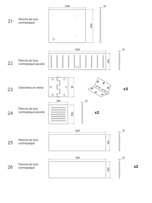 Le premier support pour le matériel électrique est une planche sur laquelle seront vissés tous les éléments du système électrique. Le second est une boîte de protection pour les batteries. Les deux petits meubles sur roulettes serviront de support d’exposition pour la parabole solaire et la turbine hydraulique.